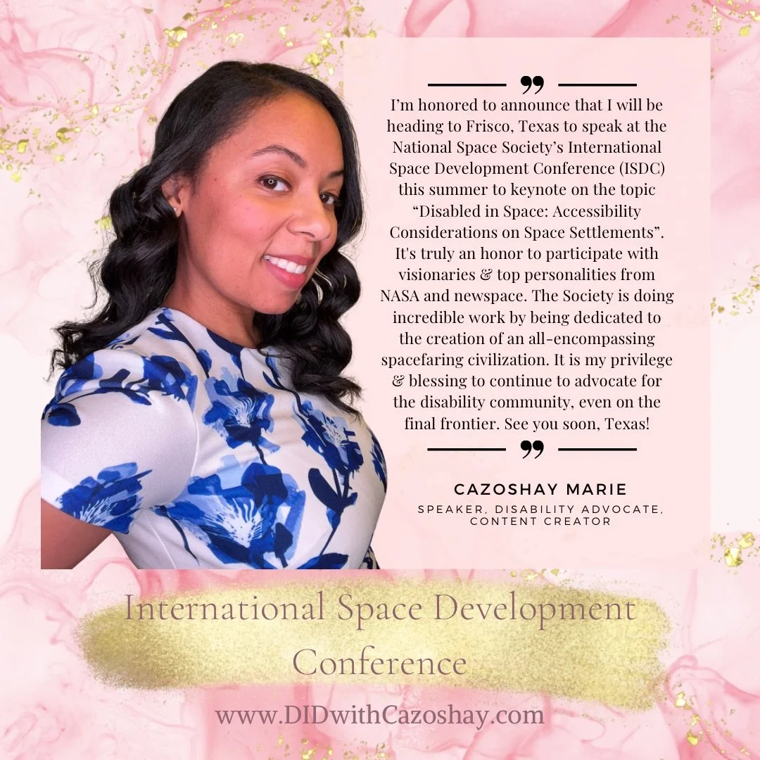 I’m honored to announce that I will be heading to Frisco, Texas to speak at the National Space Society’s International Space Development Conference (ISDC) this summer to keynote on the topic “Disabled in Space: Accessibility Considerations on Space Settlements”. It's truly an honor to participate with visionaries and top personalities from NASA and newspace. The Society is doing incredible work by being dedicated to the creation of an all-encompassing spacefaring civilization. It’s my privilege to continue to advocate for the disability community, even on the final frontier. See you soon, Texas!